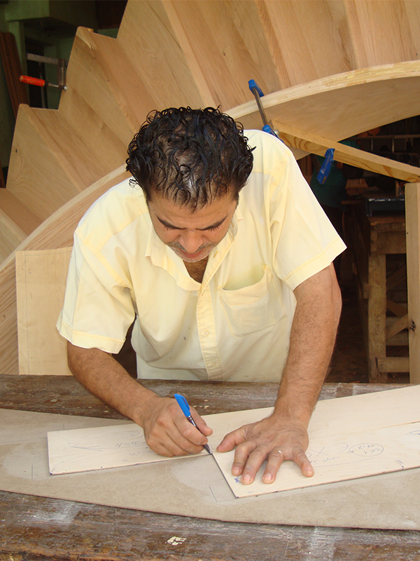 Manufacturing and design is done according to the space available for the ladder, as it imposes a certain type of design. As for the quality of wood, it is often American oak because it is very solid and can withstand friction for many years. It is also of high quality in terms of technical specifications, and the sizes are raised after finishing the floors.